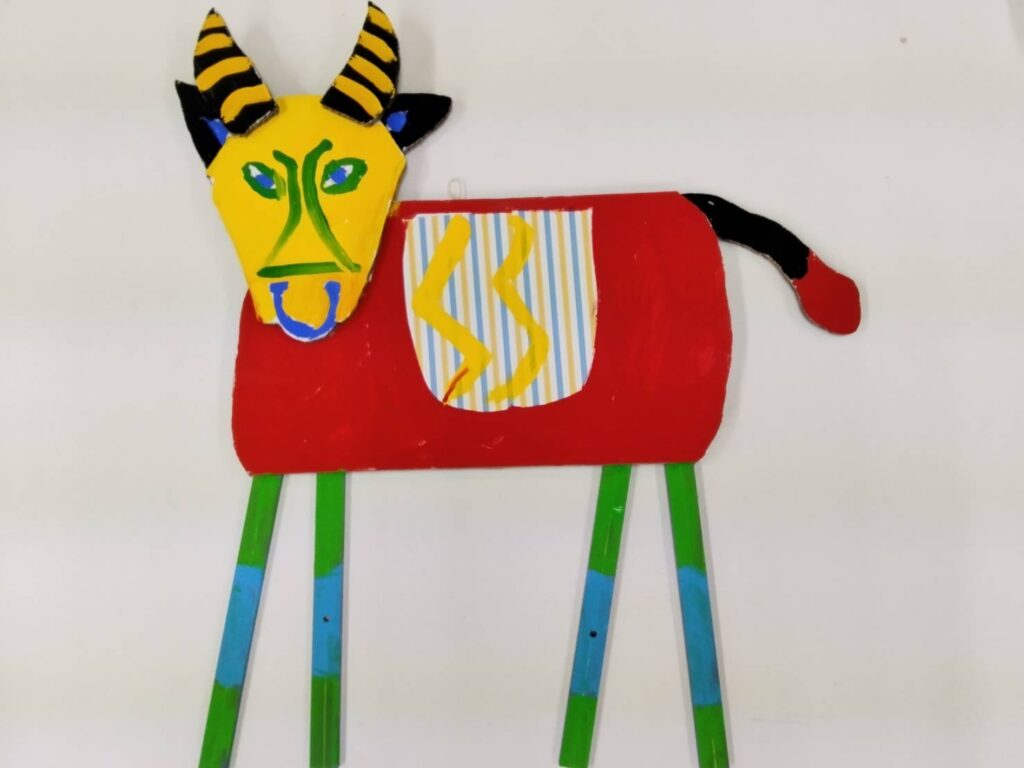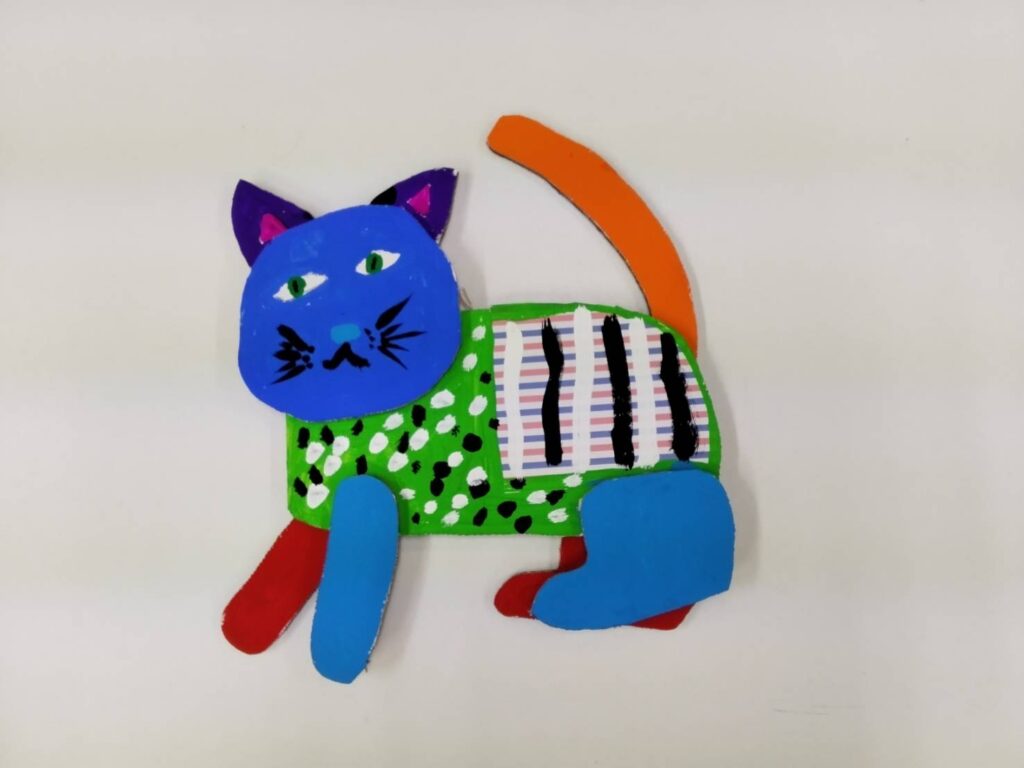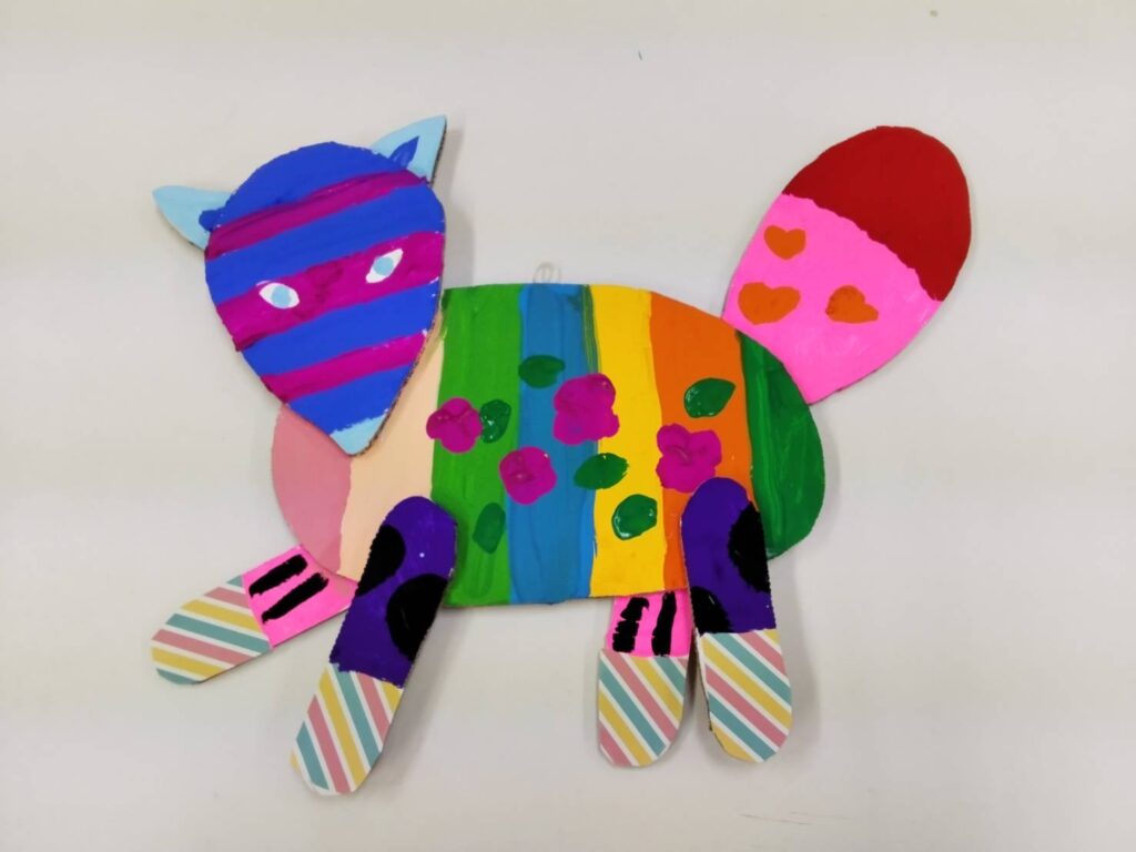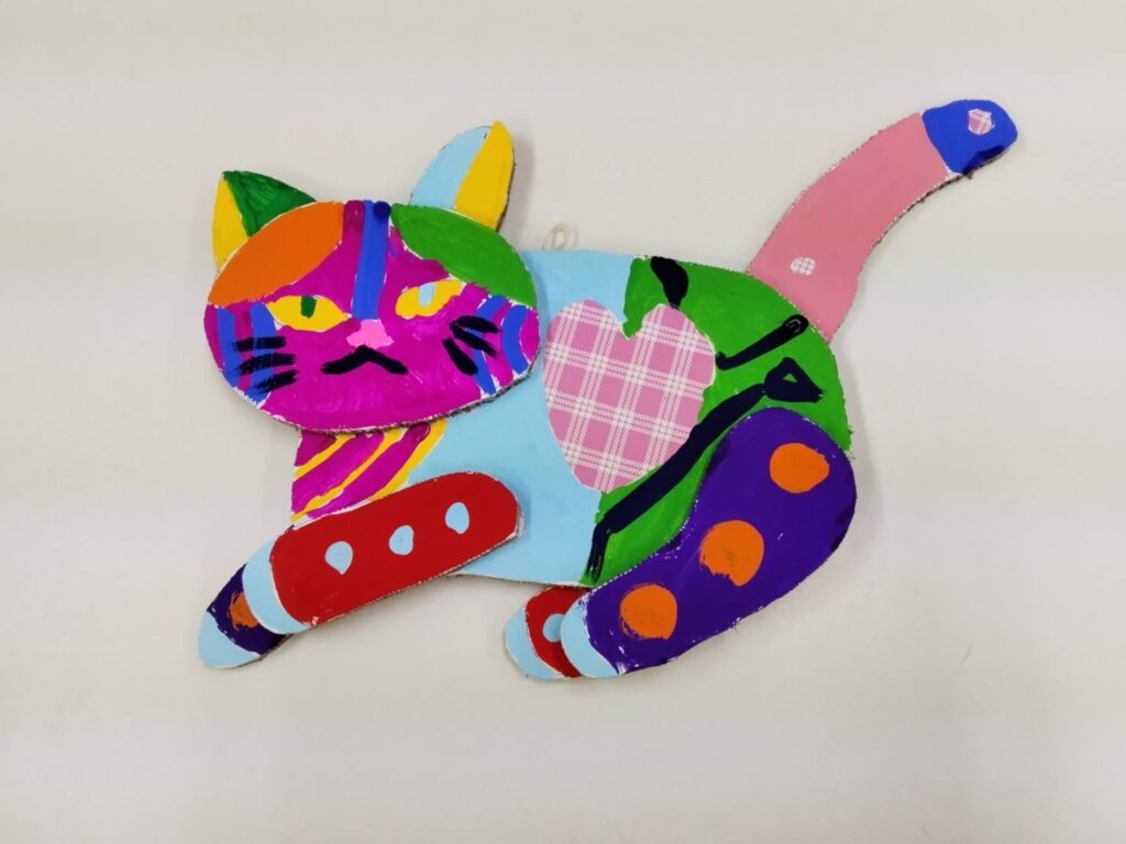 段ボールの動物たち(小学生の部) 2025年10月2日 最終更新日時 : 2025年10月2日 星の子 段ボールを糸ノコギリで切り、組み合わせて本体を作ります。色紙を一部に使い、アクリル絵の具で自由に色付けして鮮やかな動物に仕上げました。